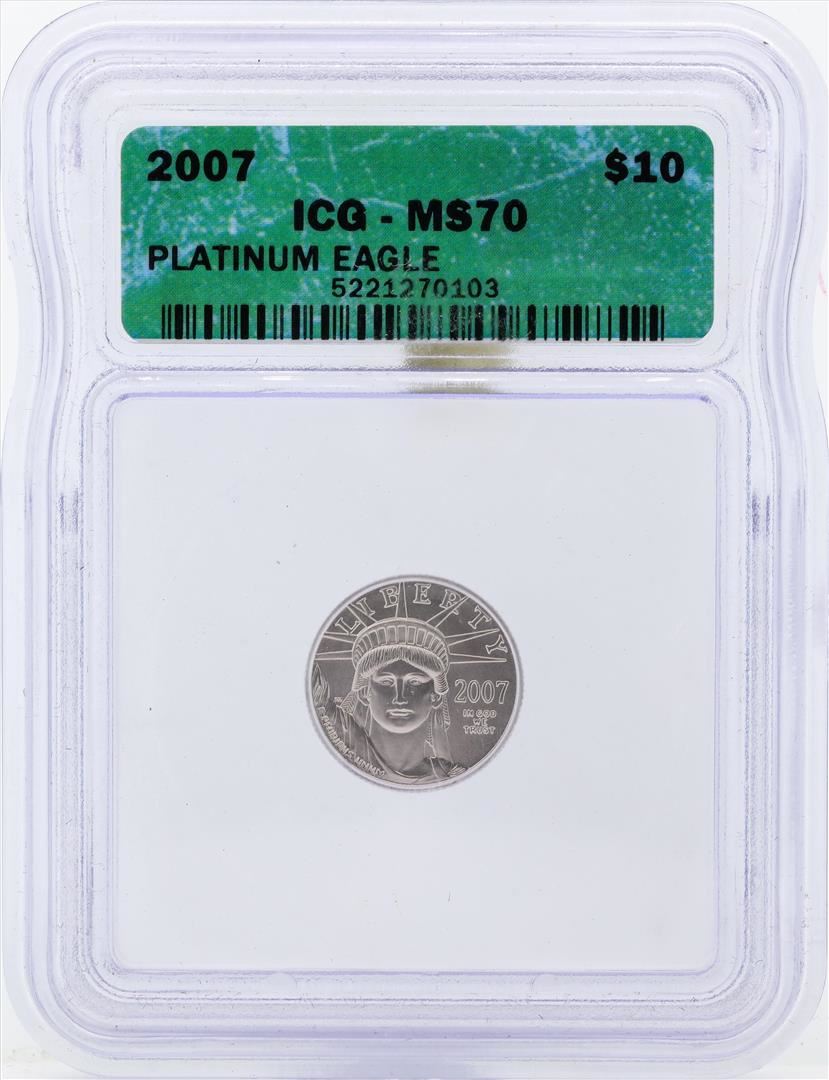 One 2007 $10 American Platinum Eagle Coin ICG MS70. ICG Certified.