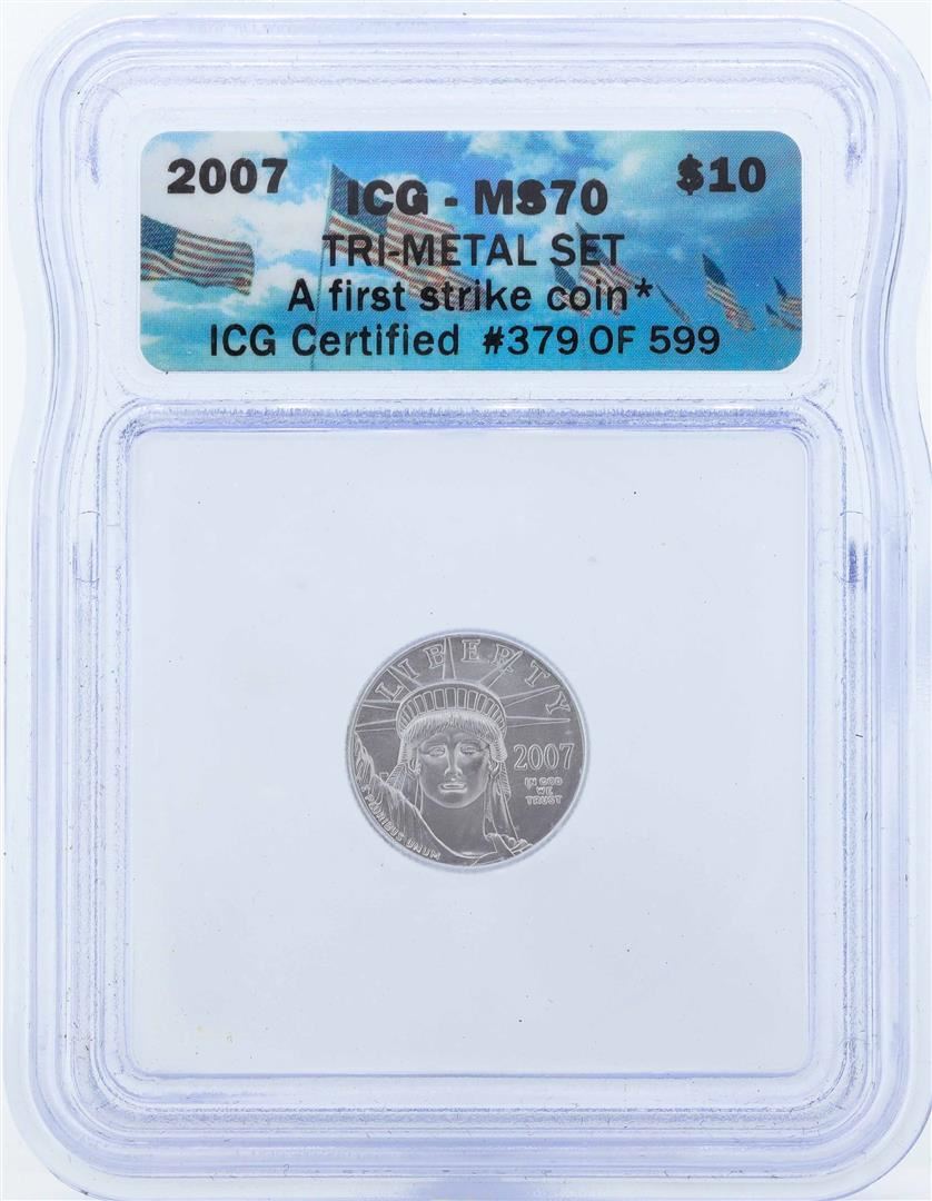 One 2007 $10 American Platinum Eagle Coin ICG MS70. ICG Certified.