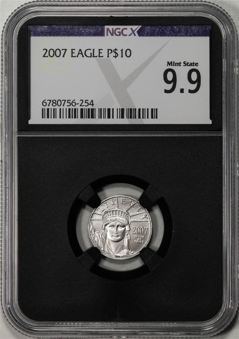 One 2007 $10 Platinum American Eagle Coin NGCX Mint State 9.9. NGCX Certified.