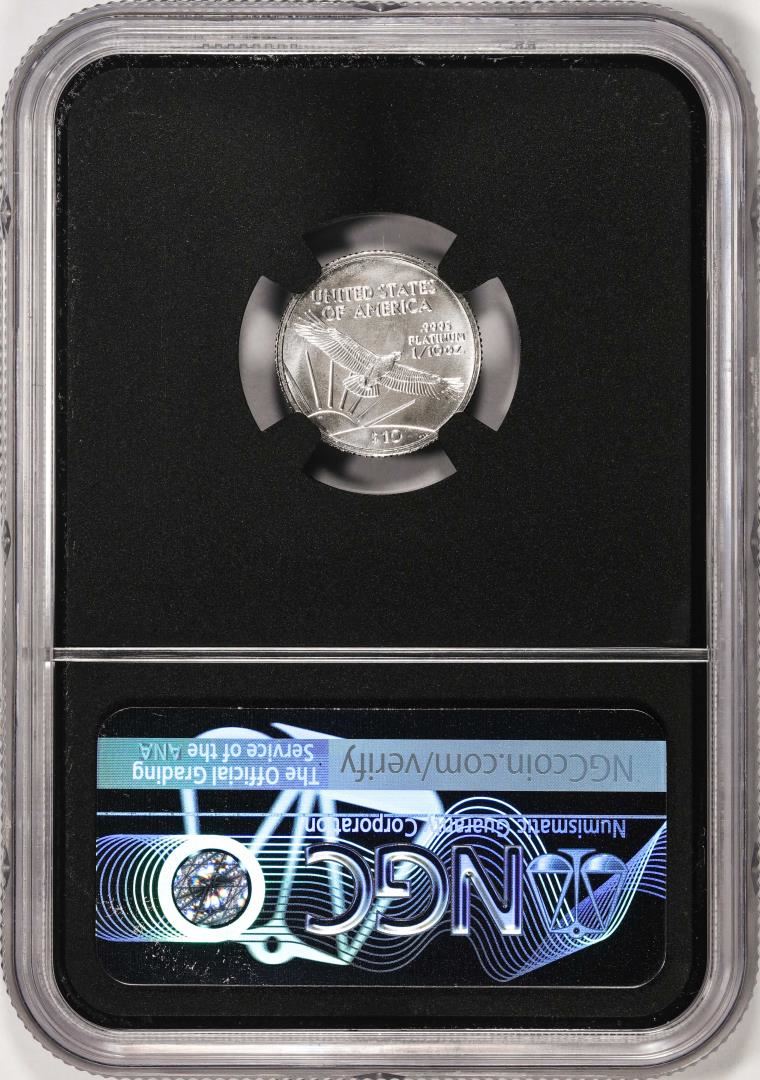One 2007 $10 Platinum American Eagle Coin NGCX Mint State 9.9. NGCX Certified.