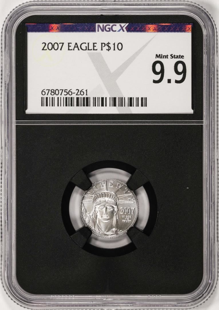 One 2007 $10 Platinum American Eagle Coin NGCX Mint State 9.9. NGCX Certified.
