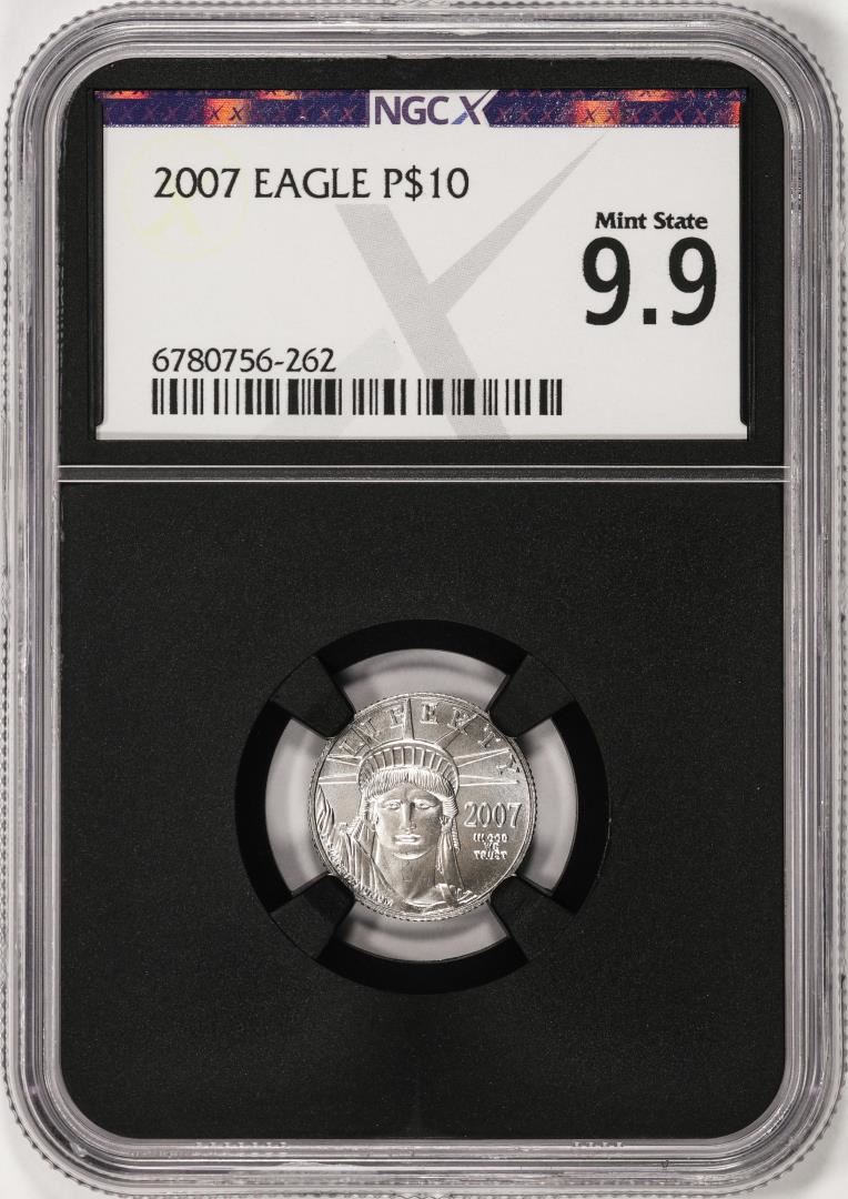 One 2007 $10 Platinum American Eagle Coin NGCX Mint State 9.9. NGCX Certified.