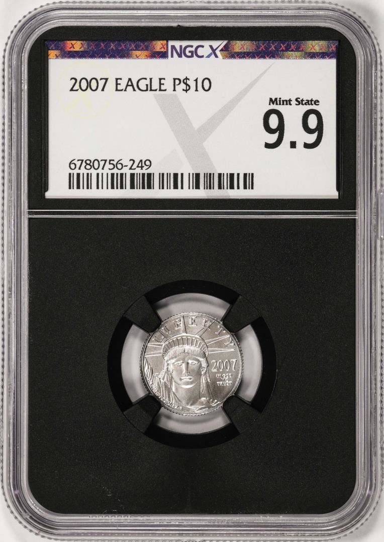 One 2007 $10 Platinum American Eagle Coin NGCX Mint State 9.9. NGCX Certified.