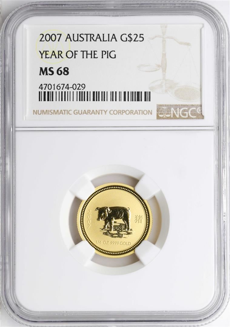 One 2007 $25 Australia Year of the Pig Gold Coin NGC MS68. NGC Certified.