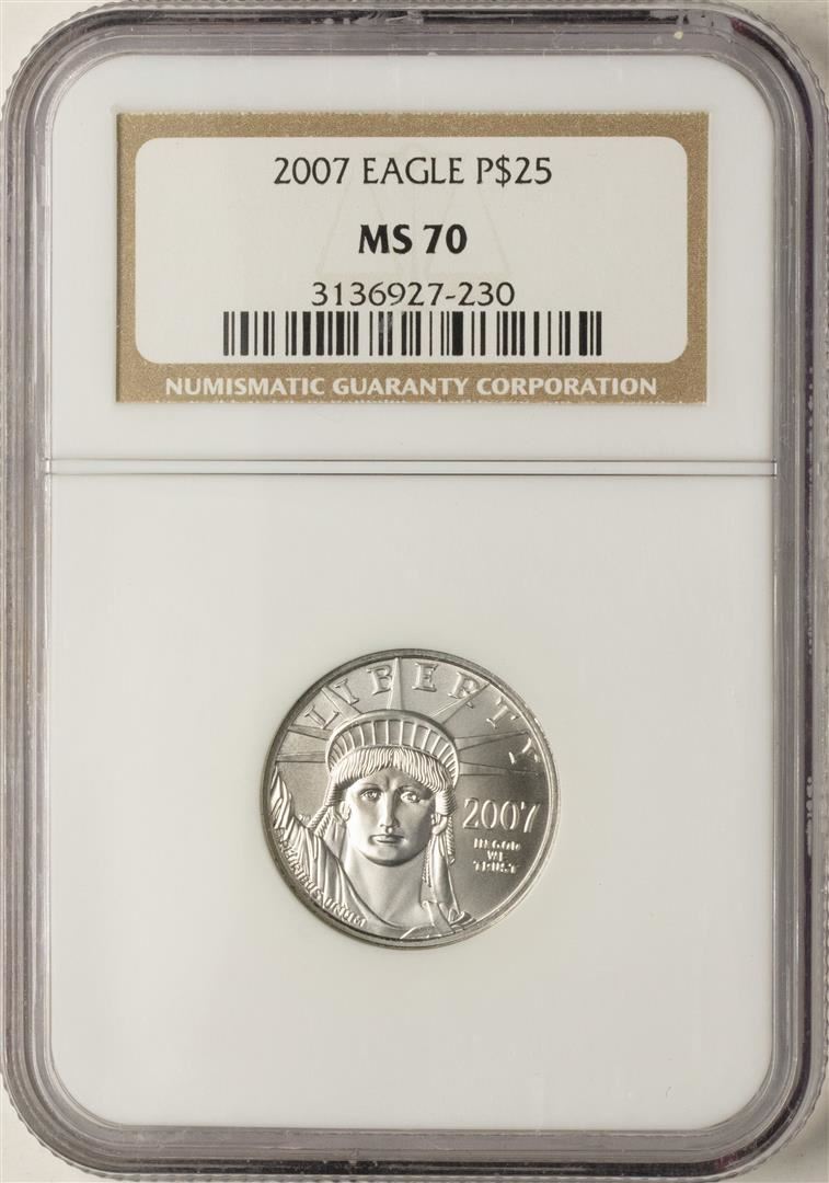 One 2007 $25 Platinum American Eagle Coin NGC MS70. NGC Certified.