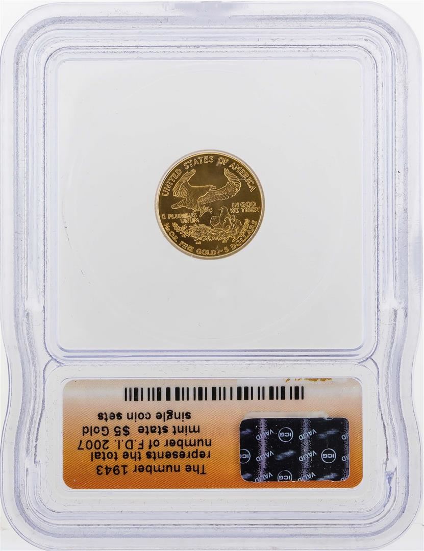 One 2007 $5 American Gold Eagle Coin ICG MS70. ICG Certified.