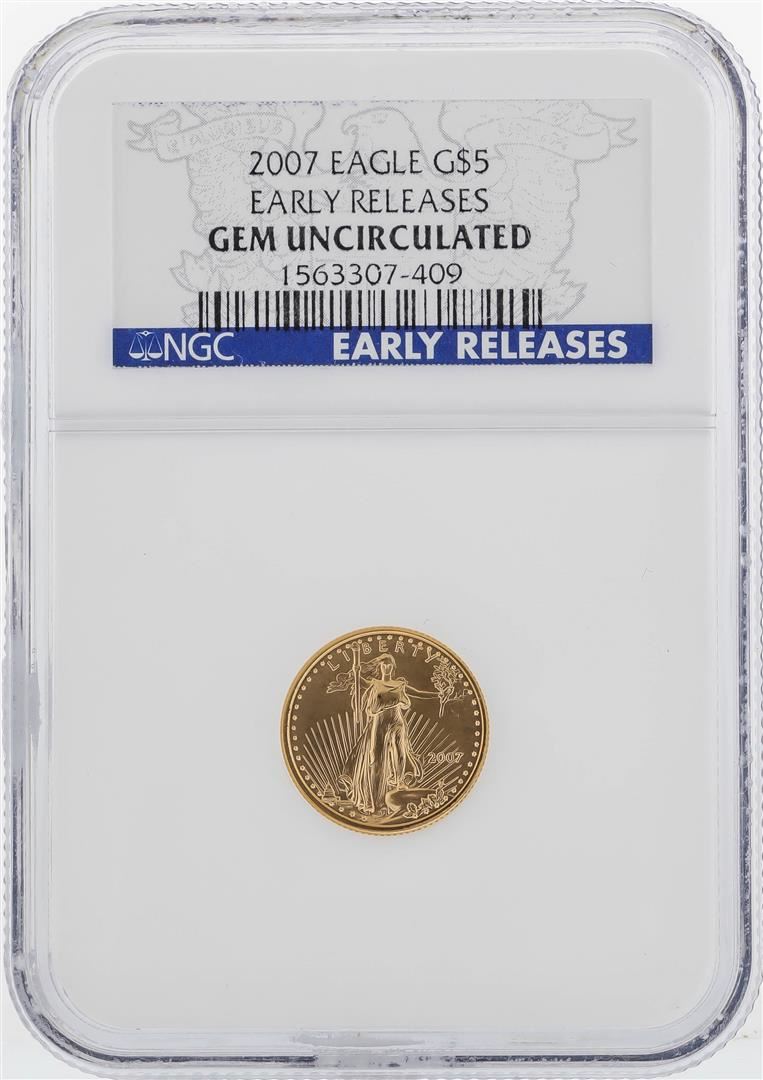 One 2007 $5 American Gold Eagle Coin NGC Gem Uncirculated. NGC Certified.