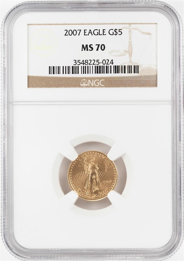One 2007 $5 American Gold Eagle Coin NGC MS70. NGC Certified.