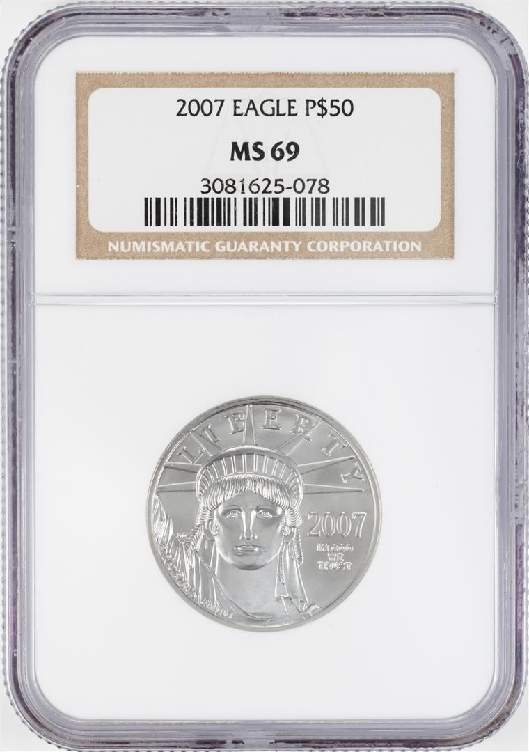 One 2007 $50 American Platinum Eagle Coin NGC MS69. NGC Certified.