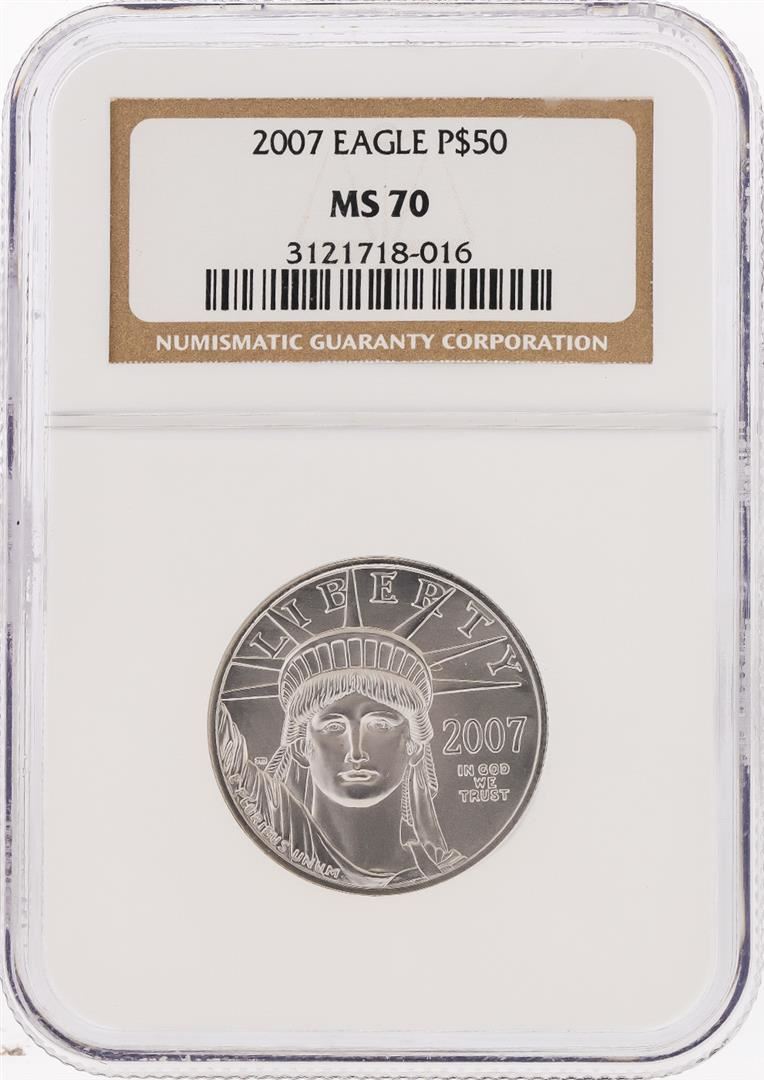One 2007 $50 American Platinum Eagle Coin NGC MS70. NGC Certified.