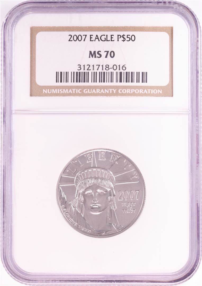 One 2007 $50 Platinum American Eagle Coin NGC MS70. NGC Certified.