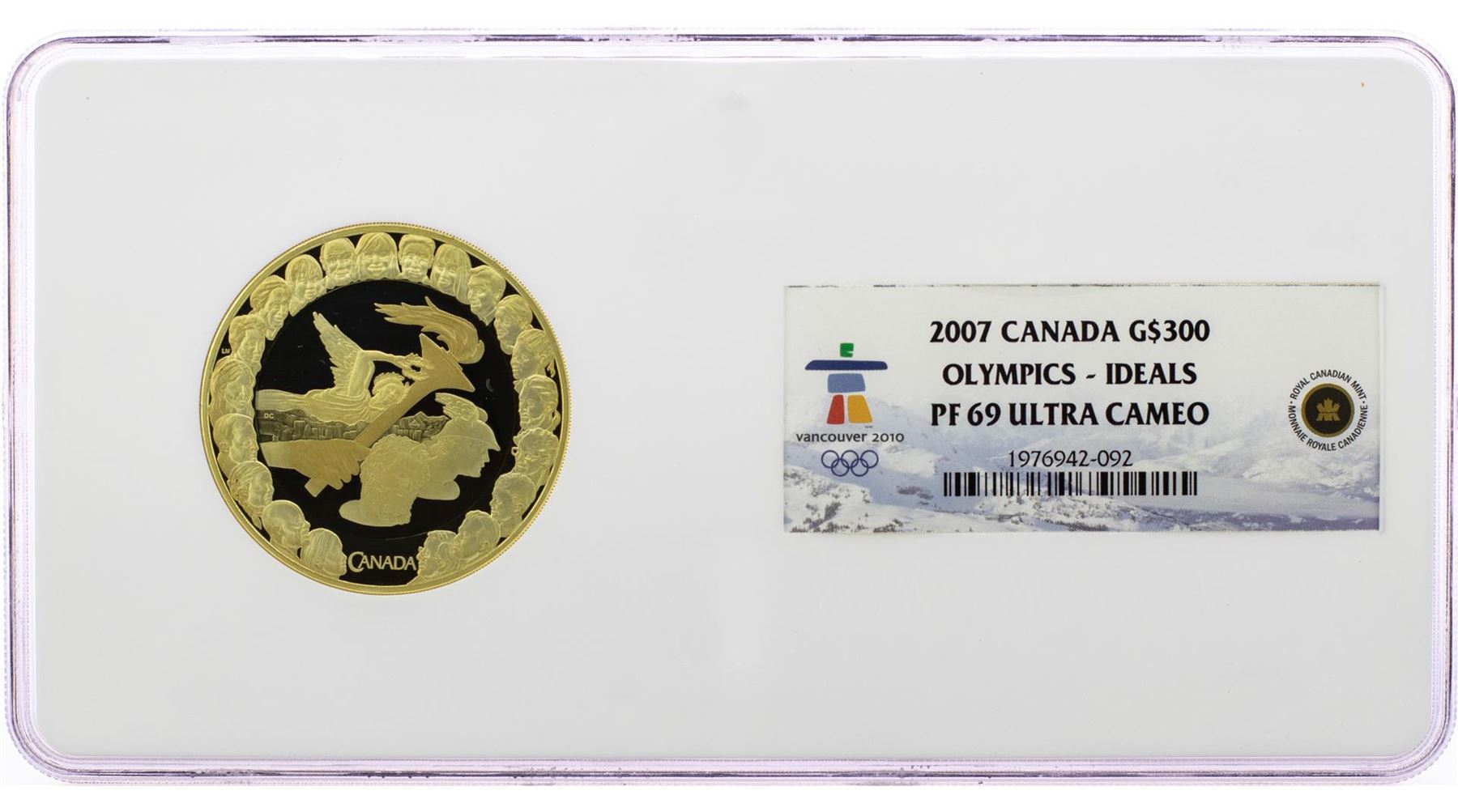 One 2007 Canada $300 Proof Olympics Ideals Gold Coin NGC PF69 Ultra Cameo w/Box & COA. NGC Certified.