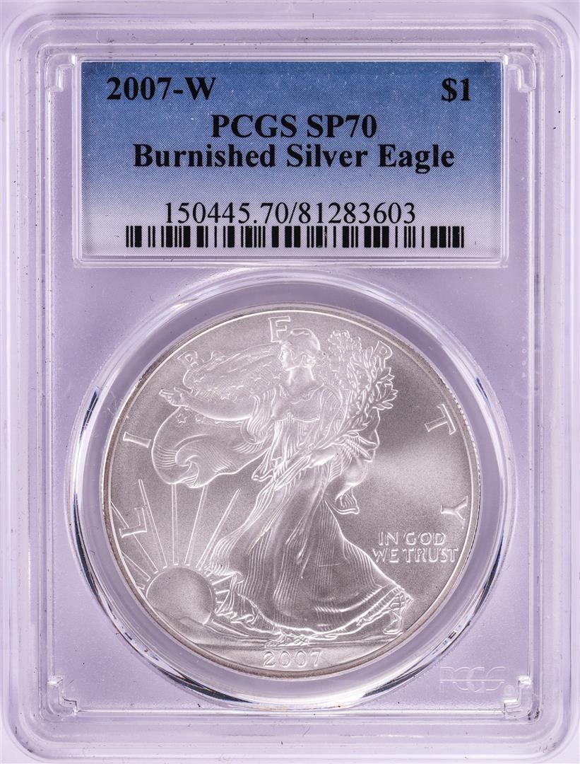 One 2007-W $1 Burnished American Silver Eagle Coin PCGS SP70. PCGS Graded.