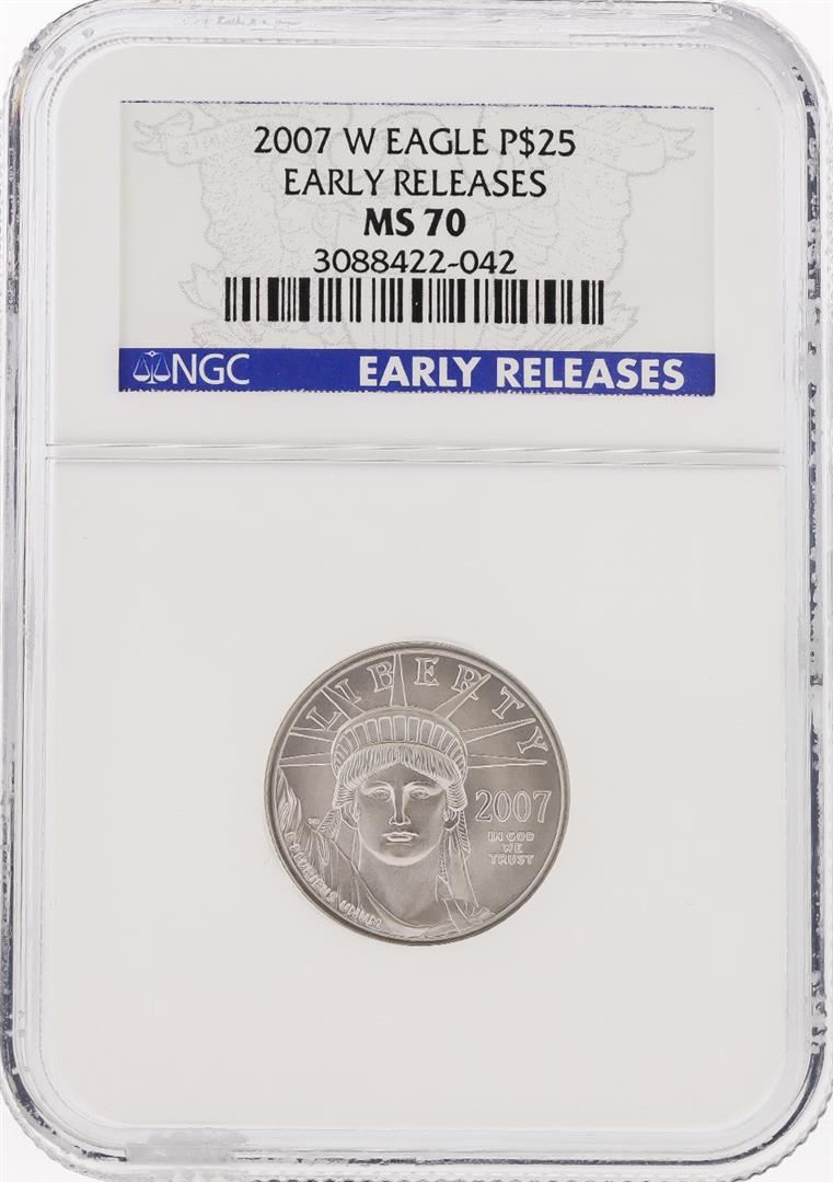 One 2007-W $25 American Platinum Eagle Coin NGC Early Releases MS70. NGC Certified.