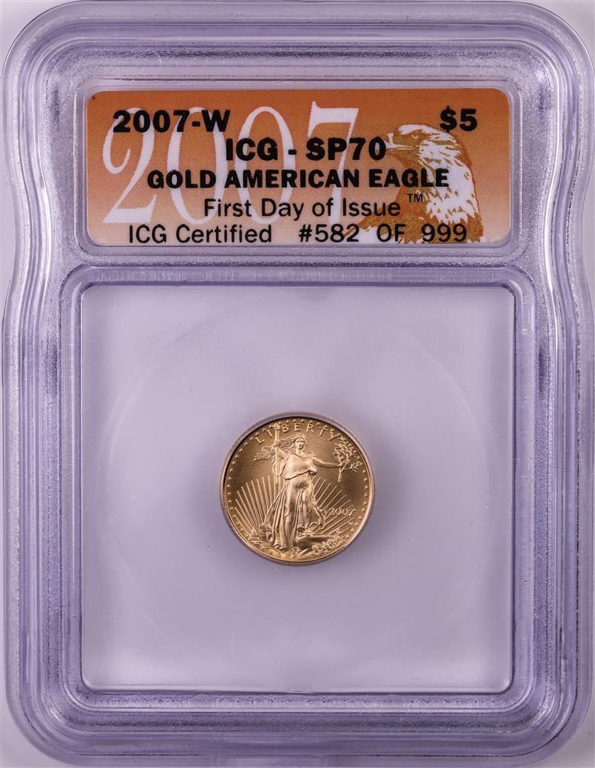 2007-W $5 Burnished American Gold Eagle Coin ANACS SP70 FDOI