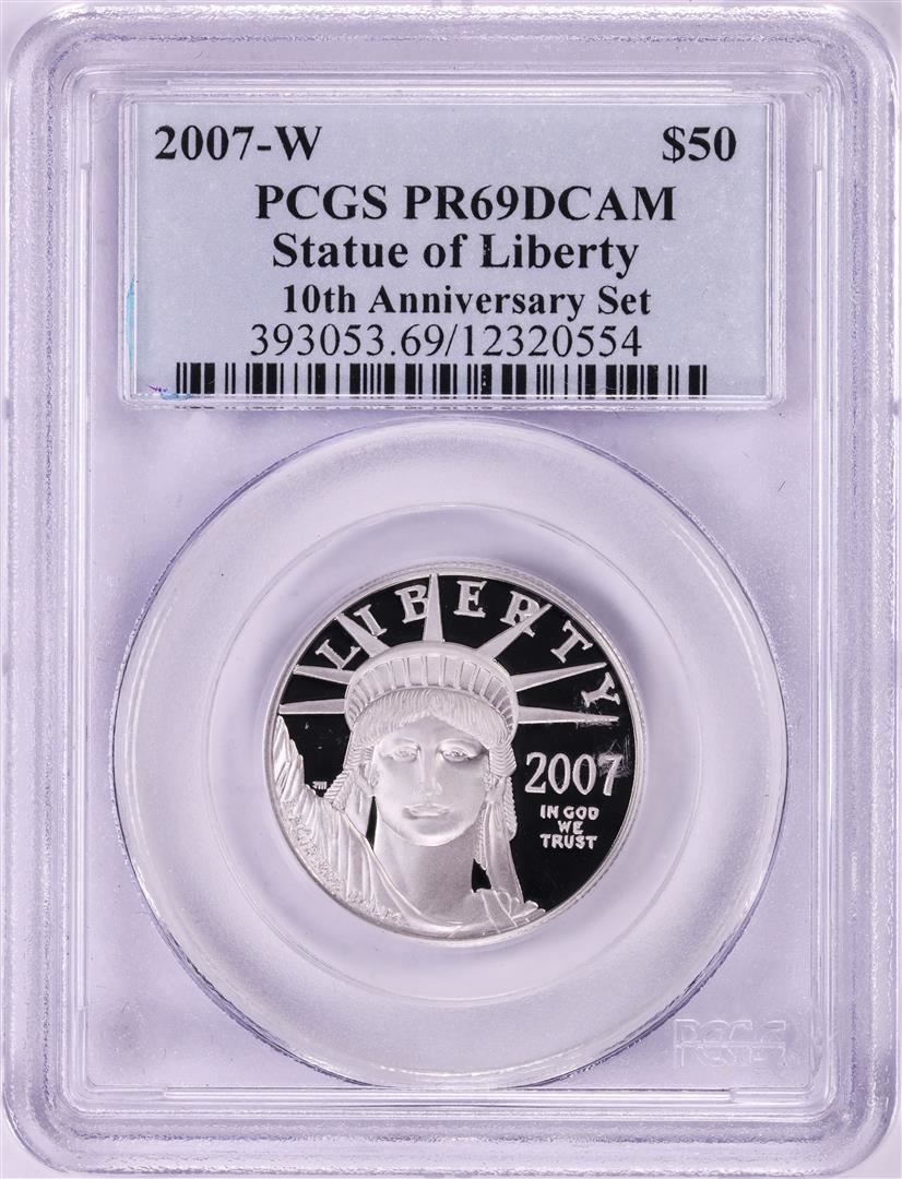 One 2007-W $50 Proof American Platinum Eagle Coin PCGS PR69DCAM. PCGS Graded.