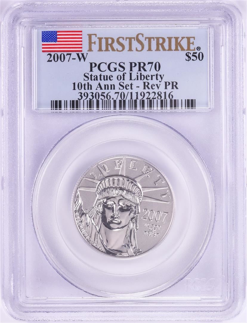 One 2007-W $50 Proof Platinum American Eagle Coin PCGS PR70 Reverse Proof First Strike. PCGS Graded.