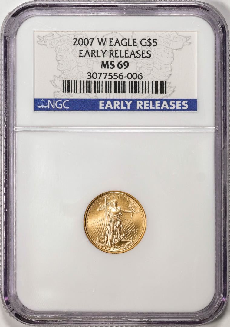 One 2007-W Burnished $5 American Gold Eagle Coin NGC MS69 Early Releases. NGC Certified.