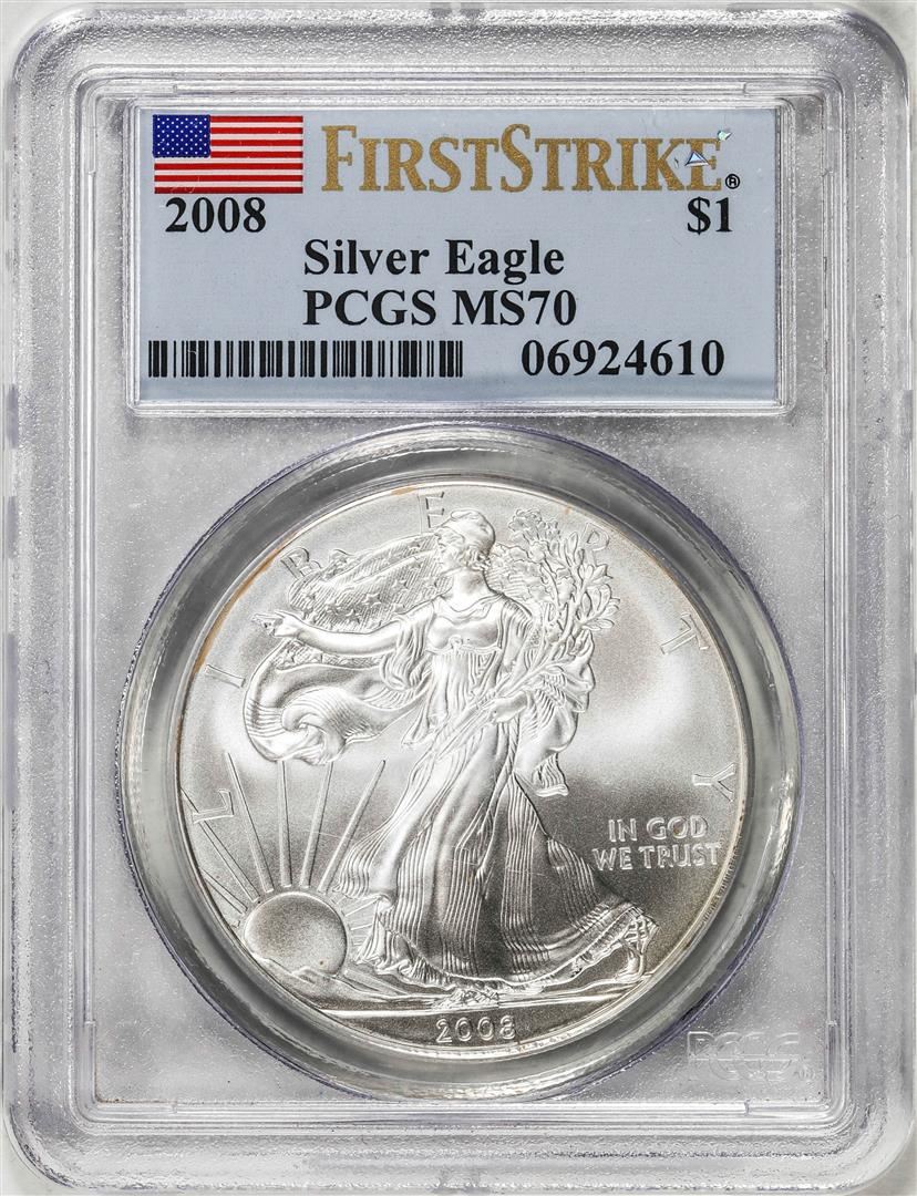 2008 $1 American Silver Eagle Coin PCGS MS70 First Strike