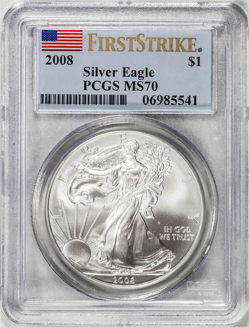 2008 $1 American Silver Eagle Coin PCGS MS70 First Strike