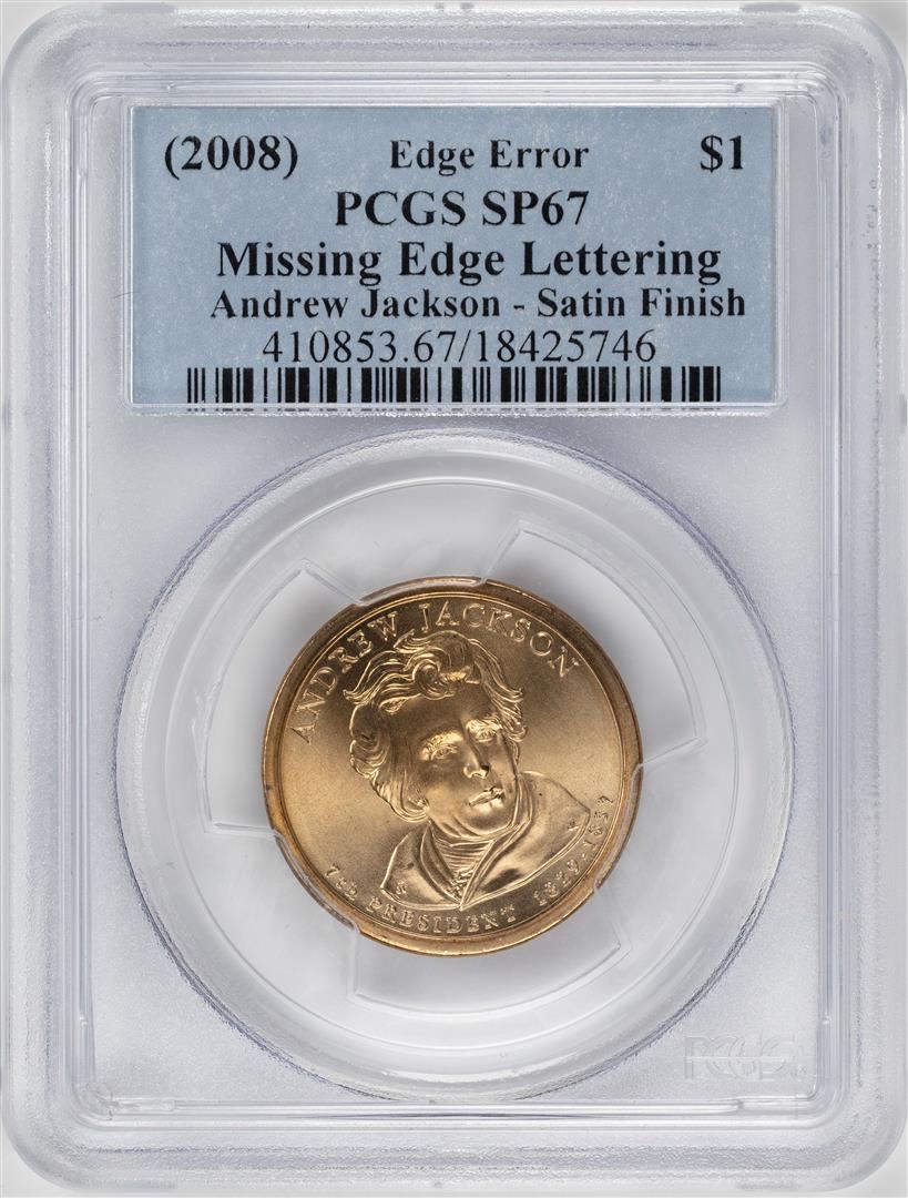 One 2008 $1 Andrew Jackson Presidential Coin PCGS SP67 Edge Error. PCGS Graded.