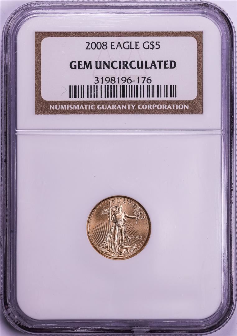 One 2008 $5 American Gold Eagle Coin NGC Gem Uncirculated. NGC Certified.