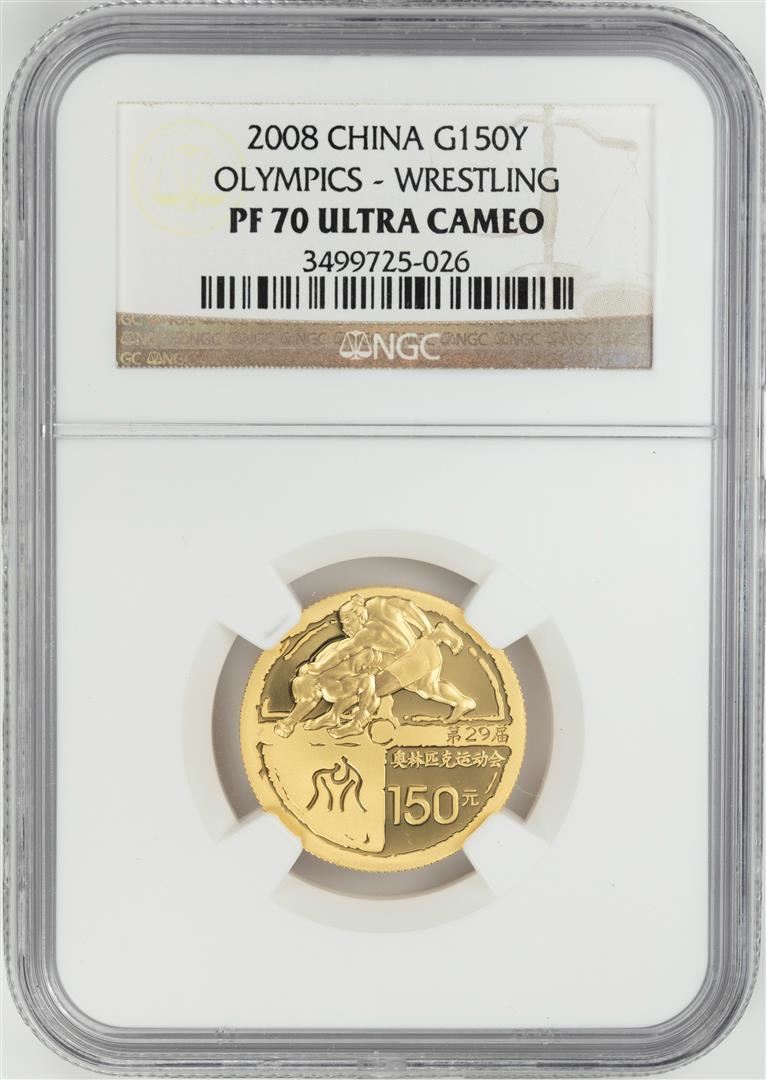 One 2008 China 150 Yuan Olympics Wrestling Gold Coin NGC PF70 Ultra Cameo. NGC Certified.