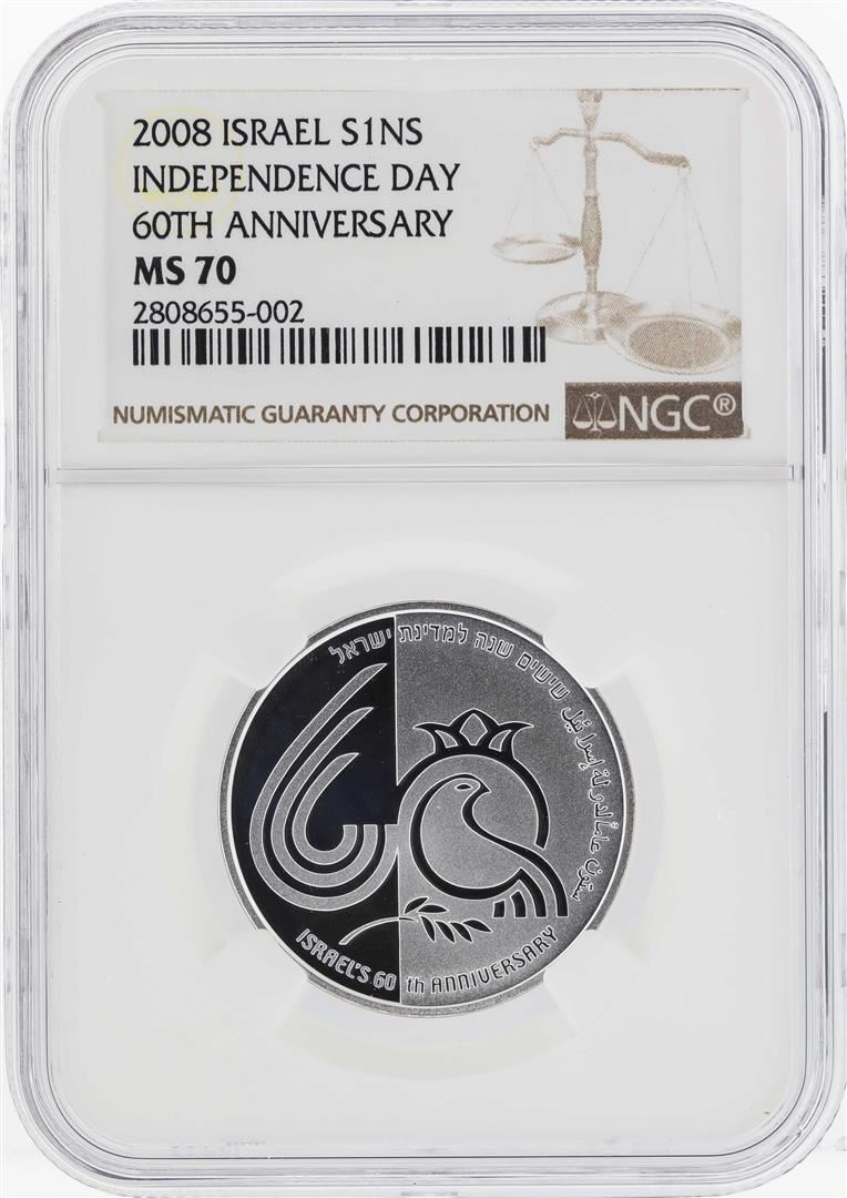 One 2008 Israel 1 New Sheqel Silver Coin NGC MS70. NGC Certified.