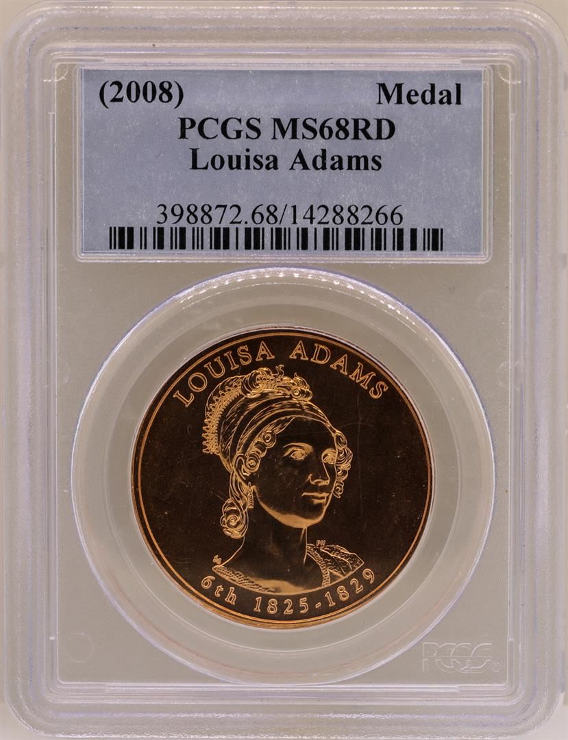 One 2008 Louisa Adams Medal PCGS MS68RD. PCGS Graded.