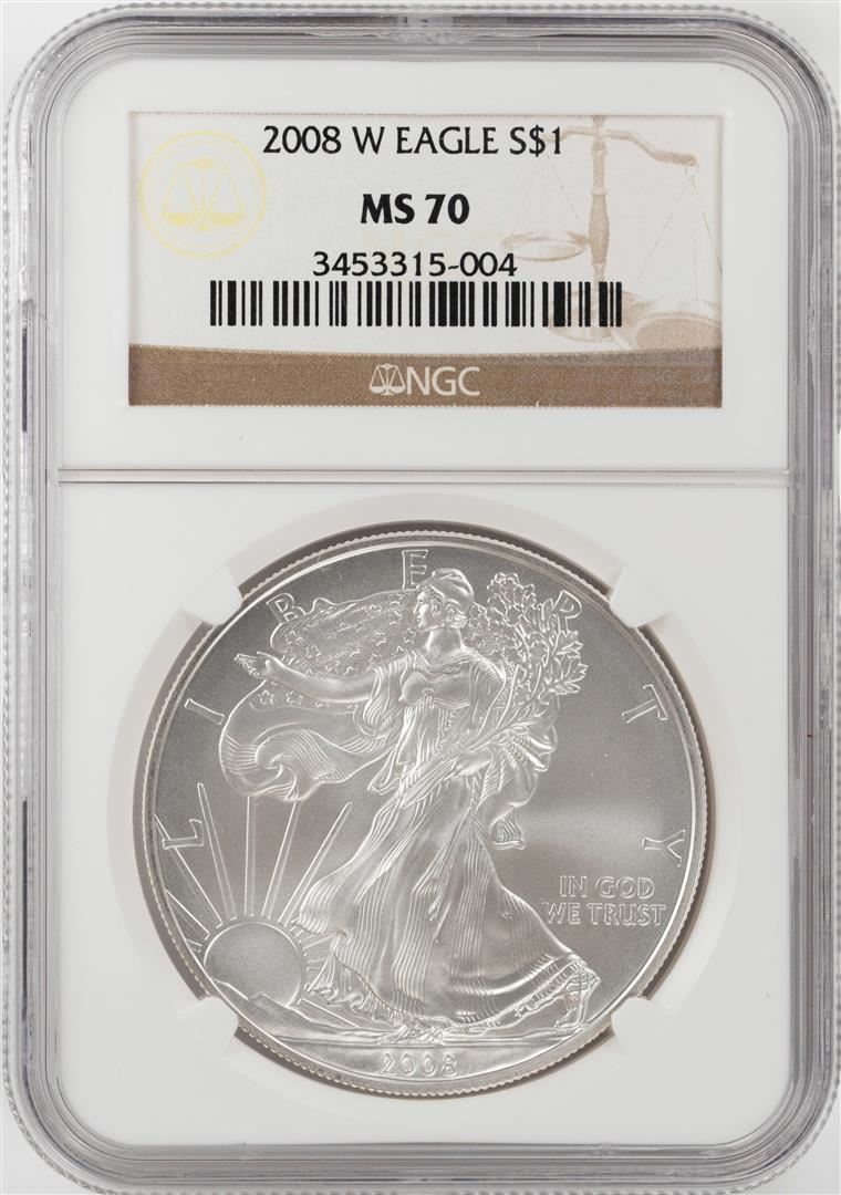 2008-W $1 American Silver Eagle Coin NGC MS70
