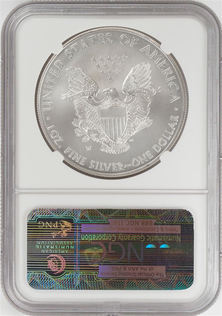 One 2008-W $1 American Silver Eagle Coin NGC MS70. NGC Certified.