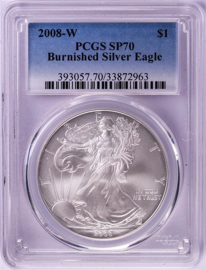 One 2008-W $1 Burnished American Silver Eagle Coin PCGS SP70. PCGS Graded.