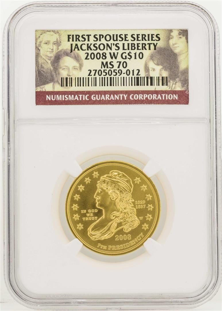 2008-W $10 First Spouse Series Jackson's Liberty Gold Coin NGC MS70