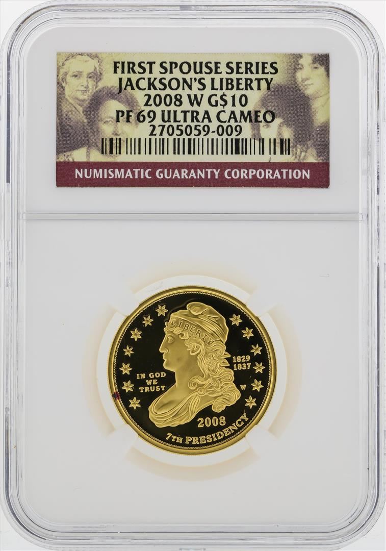 2008 W $10 First Spouse Series Jacksons Liberty Gold Coin NGC PF69 Ultra Cameo
