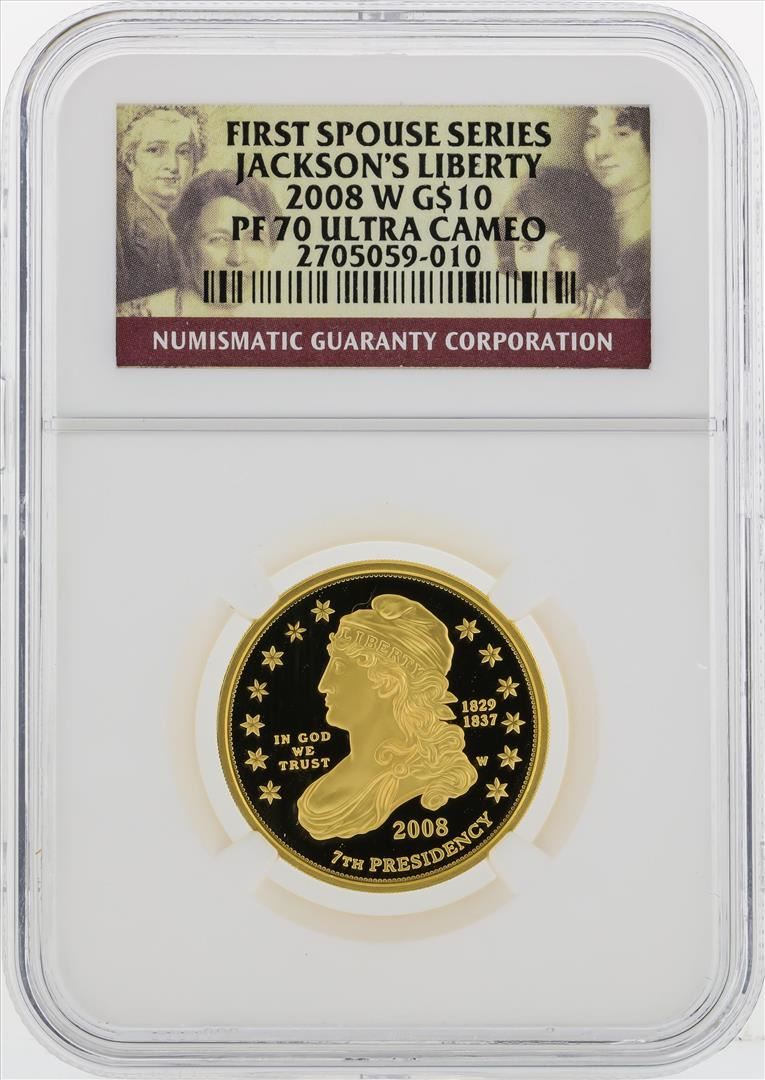 2008 W $10 First Spouse Series Jacksons Liberty Gold Coin NGC PF70 Ultra Cameo