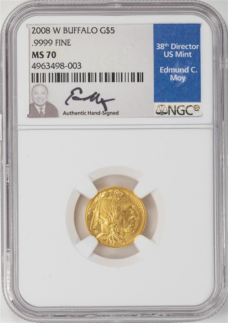 2008-W $5 American Buffalo Gold Coin NGC MS70 Edmund C. Moy Signature