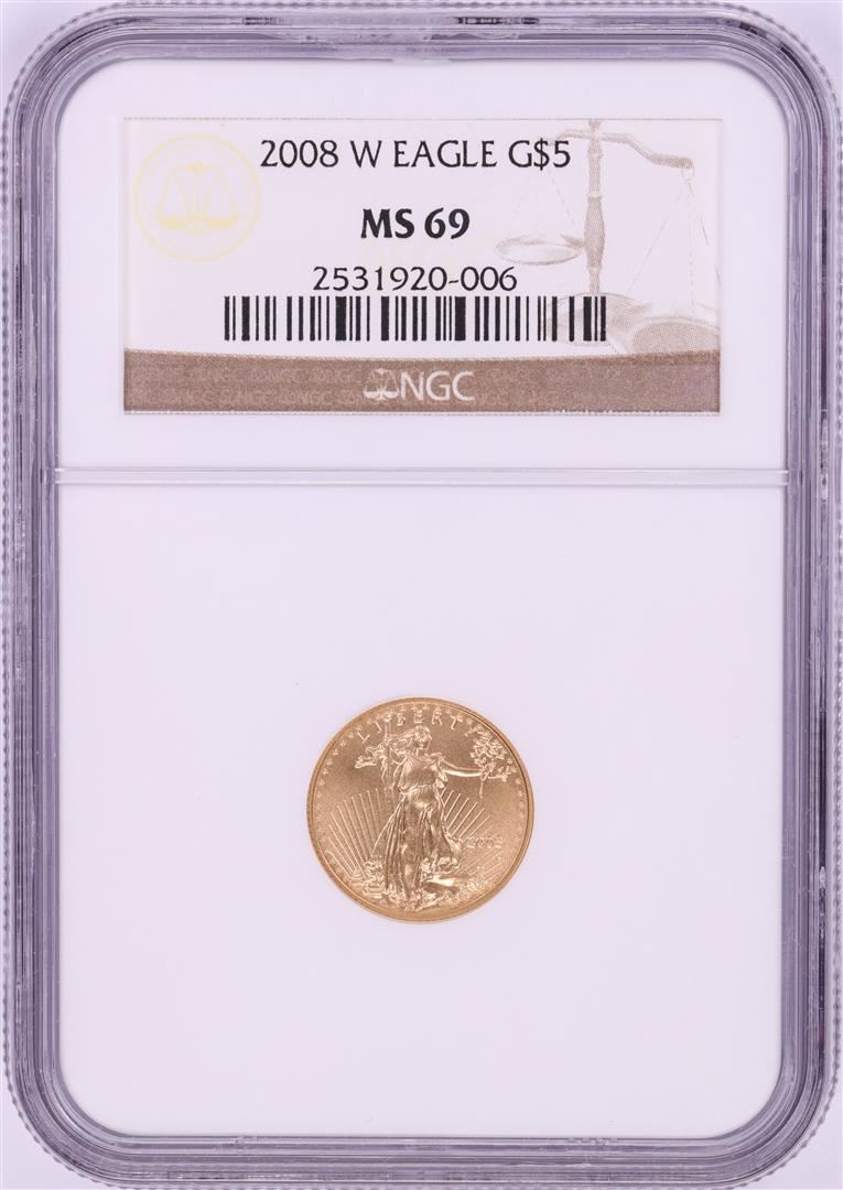 One 2008-W $5 American Gold Eagle Coin NGC MS69. NGC Certified.