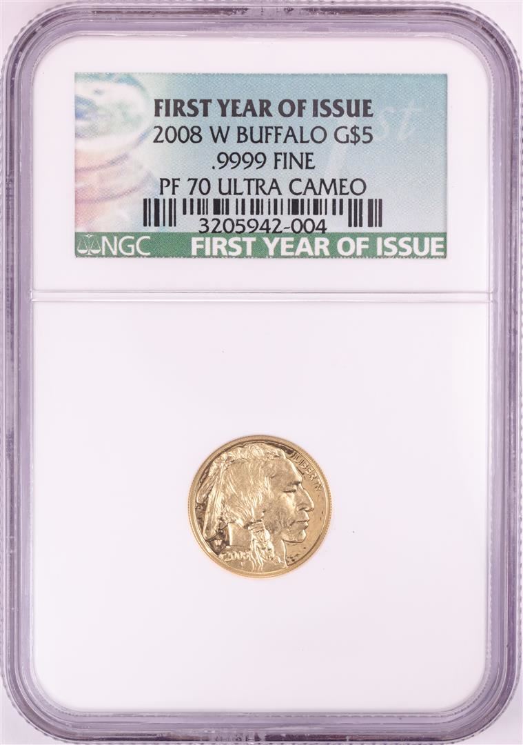 One 2008-W $5 Buffalo Gold Coin NGC PF70 Ultra Cameo First Year of Issue. NGC Certified.