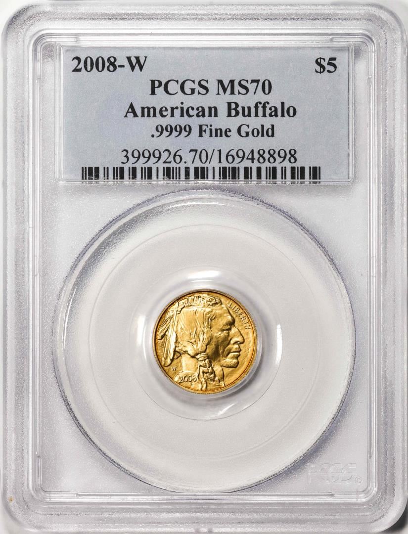 One 2008-W $5 Burnished American Buffalo Gold Coin PCGS MS70. PCGS Graded.