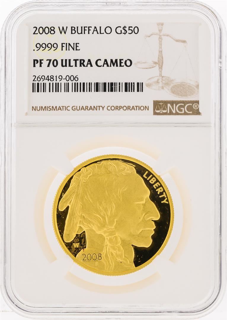 One 2008-W $50 American Gold Buffalo Coin NGC PF70 Ultra Cameo. NGC Certified.