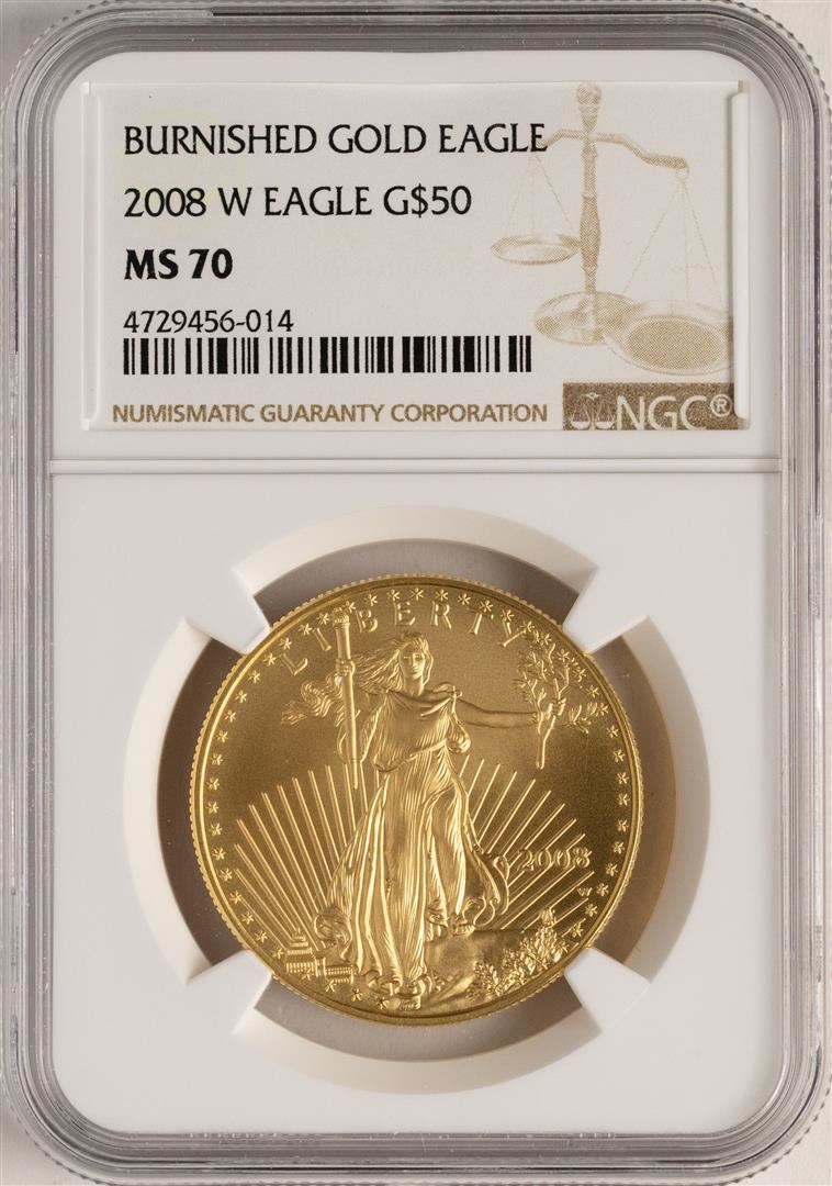 One 2008-W $50 Burnished American Gold Eagle Coin NGC MS70. NGC Certified.