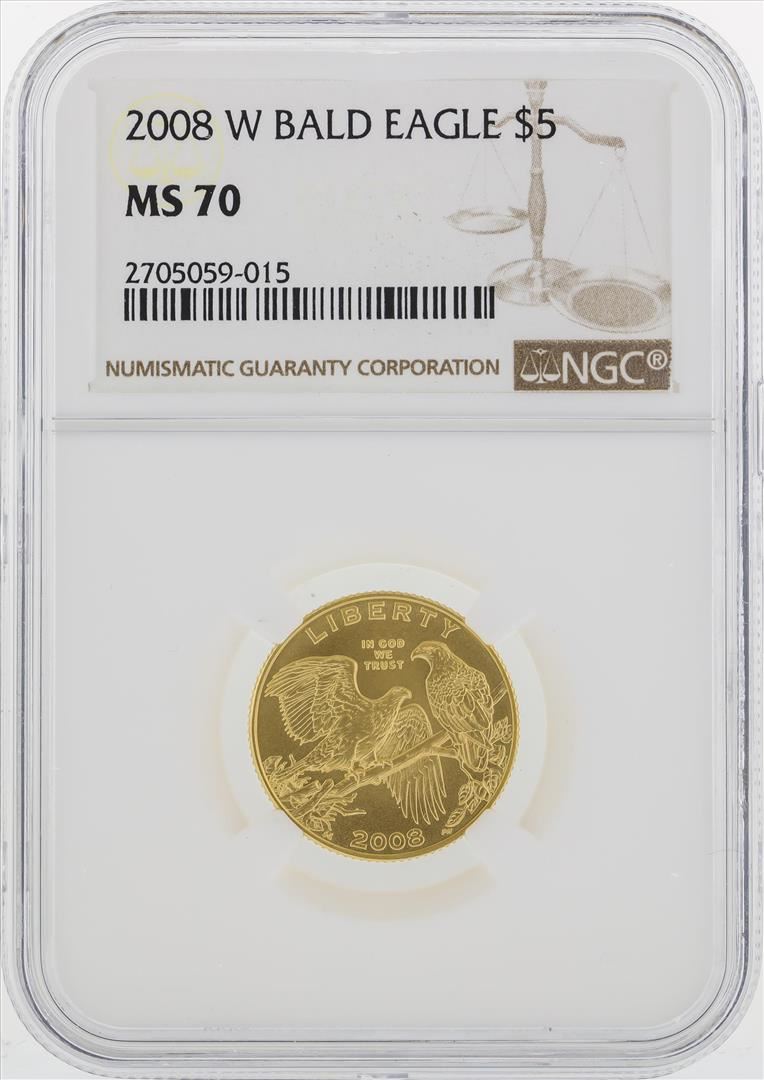 One 2008 W Bald Eagle $5 Gold Coin NGC MS70. NGC Certified.