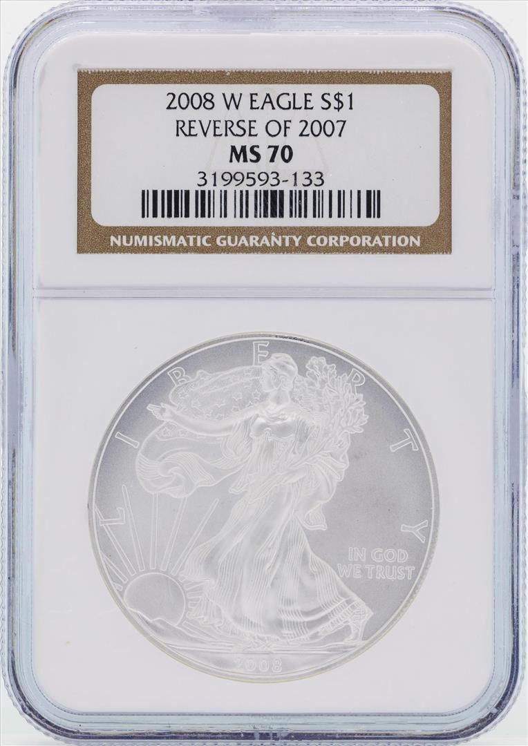 One 2008 W SILVER EAGLE RE. OF 2007 NGC70. NGC Certified.
