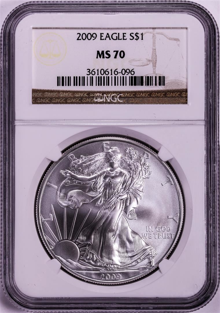 One 2009 $1 American Silver Eagle Coin NGC MS70. NGC Certified.
