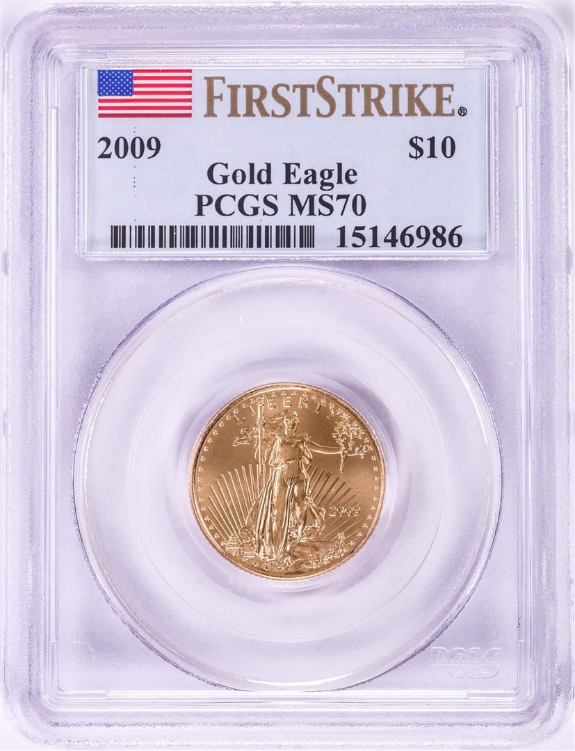 One 2009 $10 American Gold Eagle Coin PCGS MS70 First Strike. PCGS Graded.