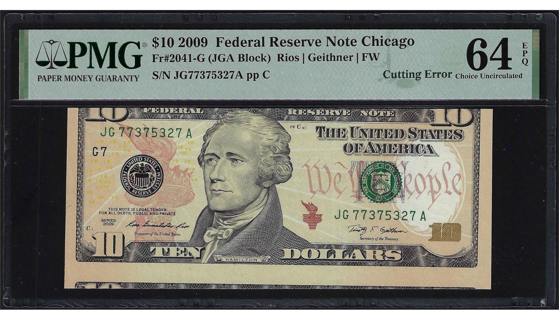 2009 $10 Federal Reserve Cutting Error Note Fr.2041-G PMG Choice Uncirculated 64EPQ