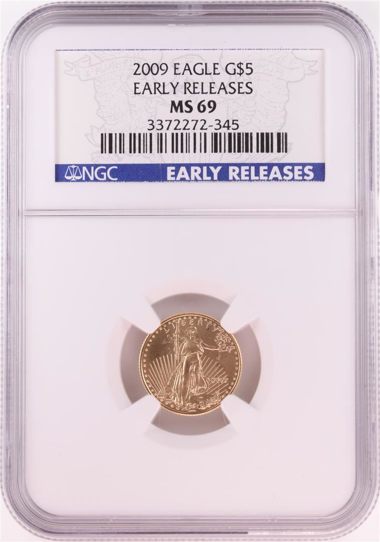 One 2009 $5 American Gold Eagle Coin NGC MS69 Early Releases. NGC Certified.