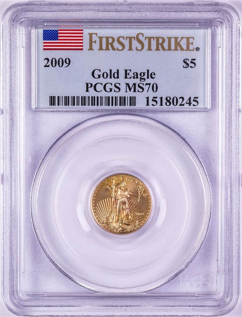 One 2009 $5 American Gold Eagle Coin PCGS MS70 First Strike. PCGS Graded.