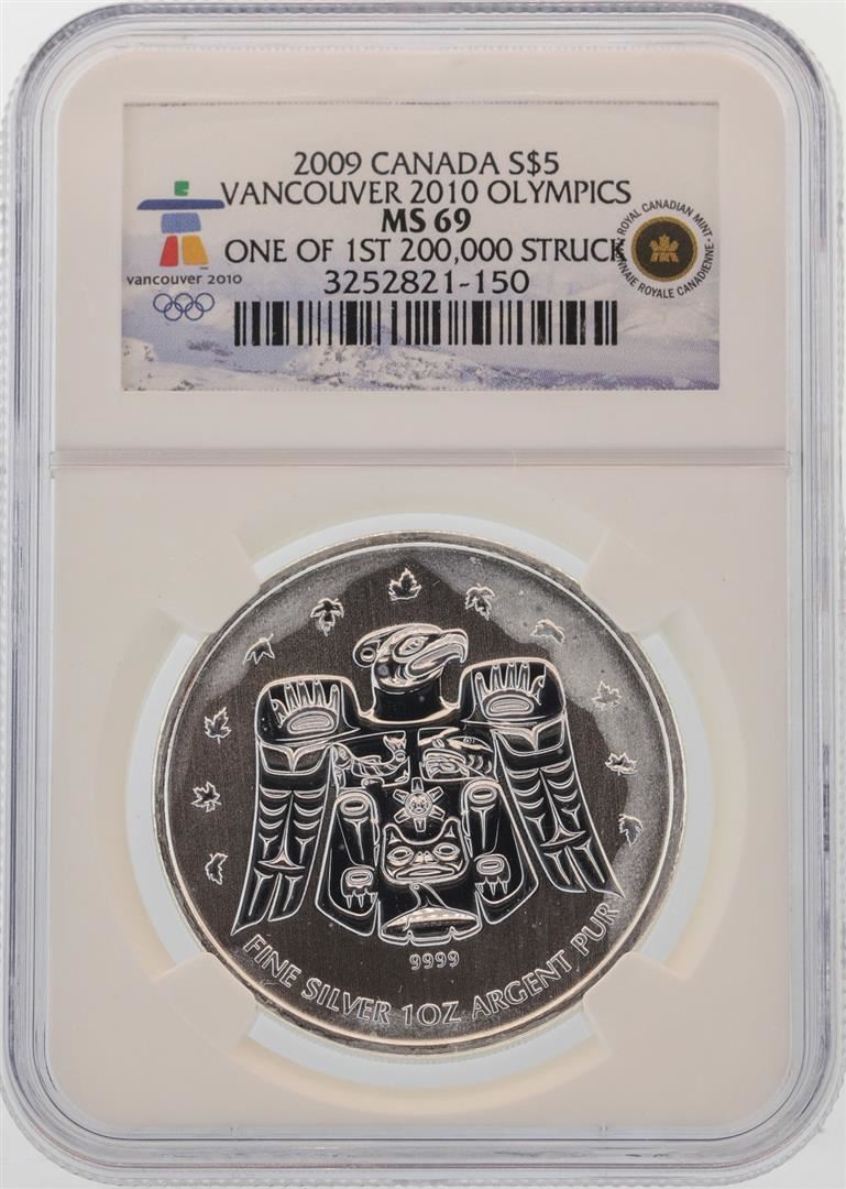 One 2009 $5 Canada Olympics Silver Coin NGC MS69. NGC Certified.