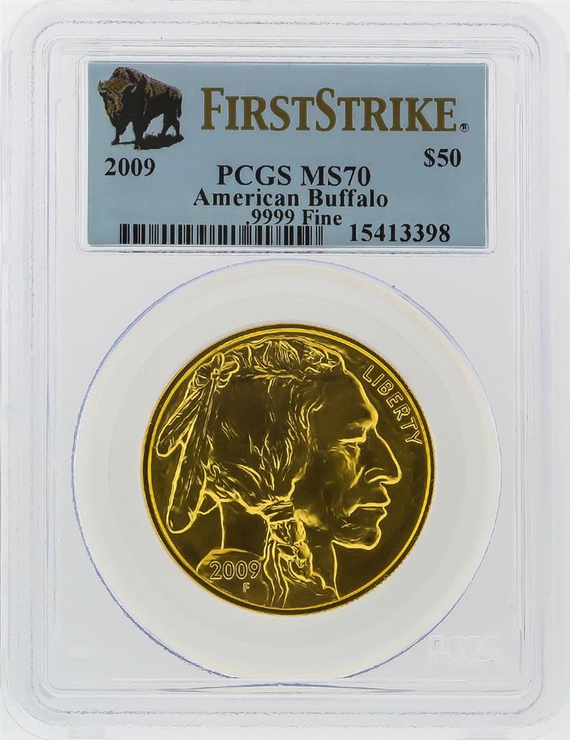 One 2009 $50 American Buffalo Gold Coin PCGS First Strike MS70. PCGS Graded.